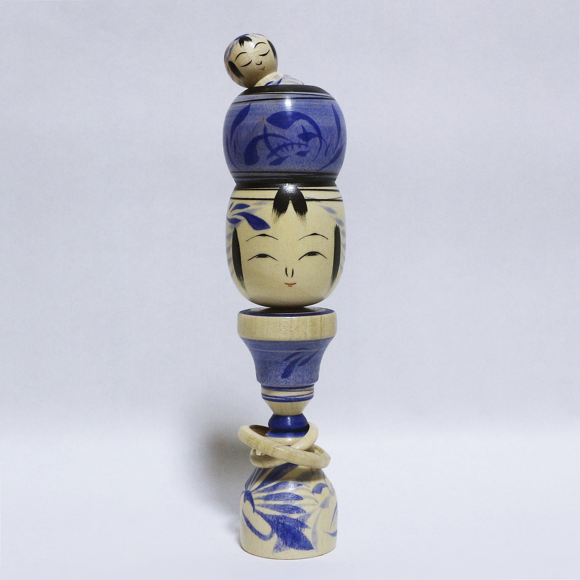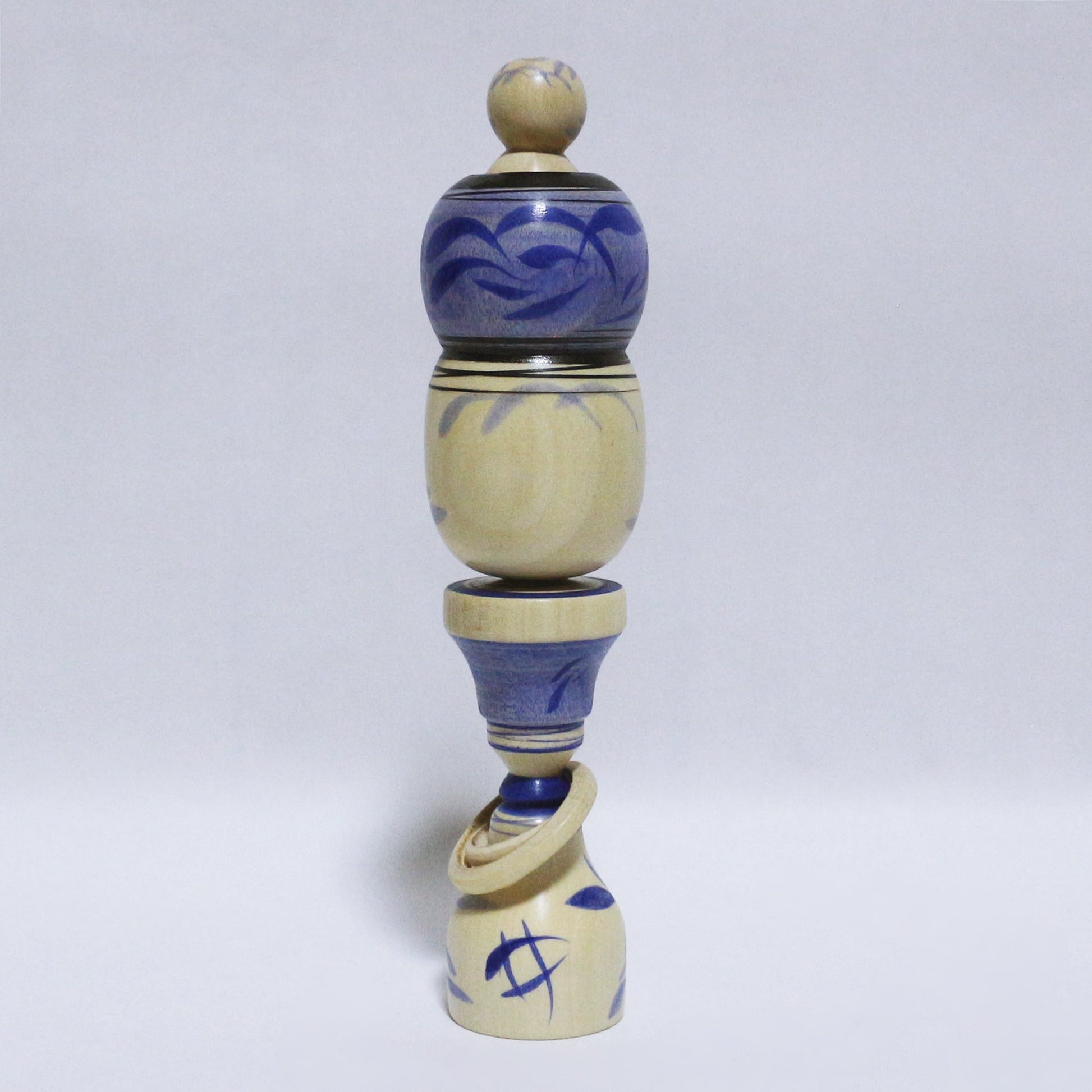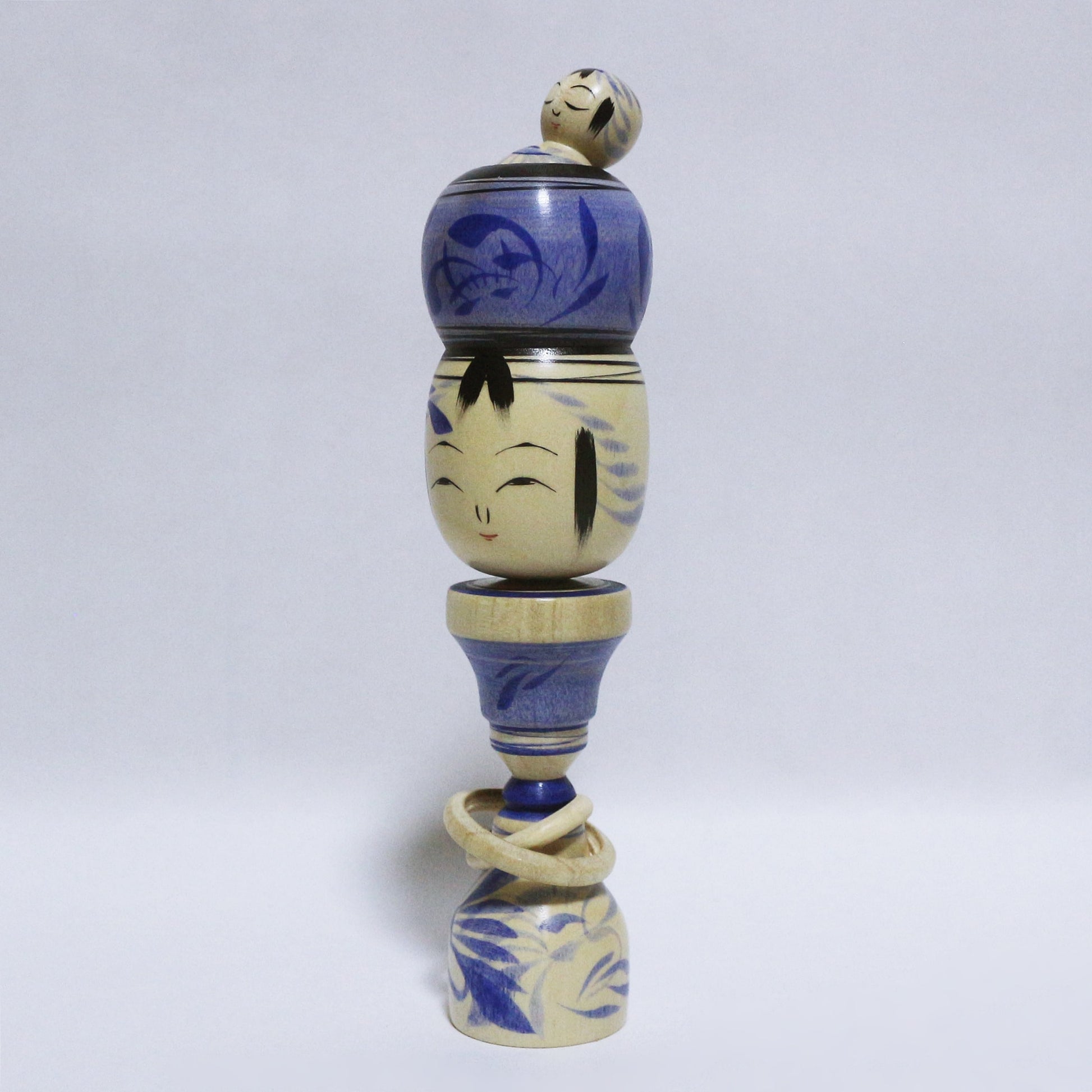 青紫 輪入れ Blue-purple Wood-Ring KOKESHI ※769