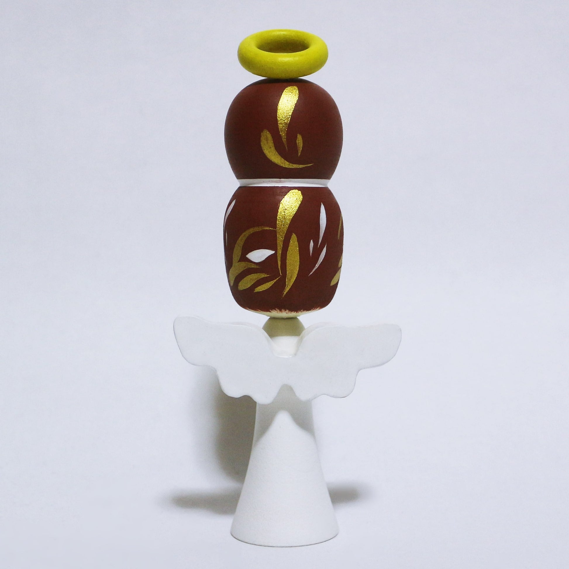Placing Kokeshi where sun light spots could change the color due to the damage of UV to wood and painting. Placing Kokeshi at the dry environment could lead to cracks and damage to painting. Wax was used on some products. Sometimes wax can stick together with white or yellow soild form. You can easily wipe them of by cleaning with dry clean towel.